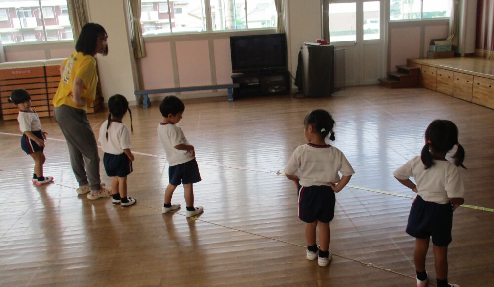 年少組さん 運動会の練習を頑張っているね! 2025年9月3日 第二耕雲寺幼稚園 年少組 運動会の練習が始まっています。初めてのお遊戯とは思えないくらいとても上手に真剣に練習している年少組さん。そのかわいらしく健気な姿に見ている先生達も胸がギュウっとなります。 2つのグループに分かれて練習します。見ているグループの子ども達も楽しそうに一緒に踊っています。 こんなに真剣なまなざしで頑張る姿を見ると練習であっても感動します。本番が本当に楽しみです。