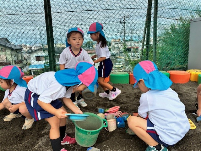 今日は涼しかったので、子どもたちと一緒に外遊びを楽しみました。熱中症に気をつけながら、元気いっぱい体を動かしています。