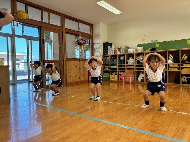 笑顔いっぱいりす組さん!先生も一緒にがんばってます。運動会が楽しみですね。