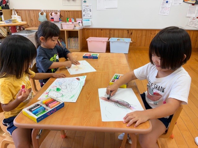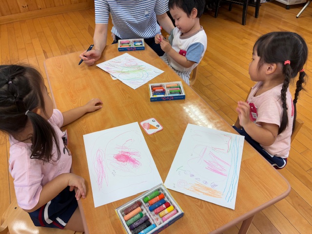 新しいお友だちが1名入園しました。初日はクレヨンでお絵かきを楽しみました。これからたくさんの思い出を一緒に作っていこうね♪