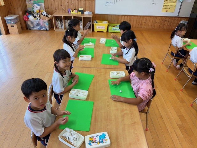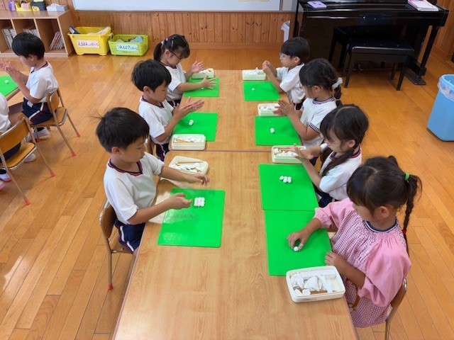 粘土を使ってお月見団子を作りました。10月6日にはお団子ではありませんが、「お月見饅頭」をみんなでいただく予定です。季節の行事を感じながら、楽しいひとときを過ごせればと思います。