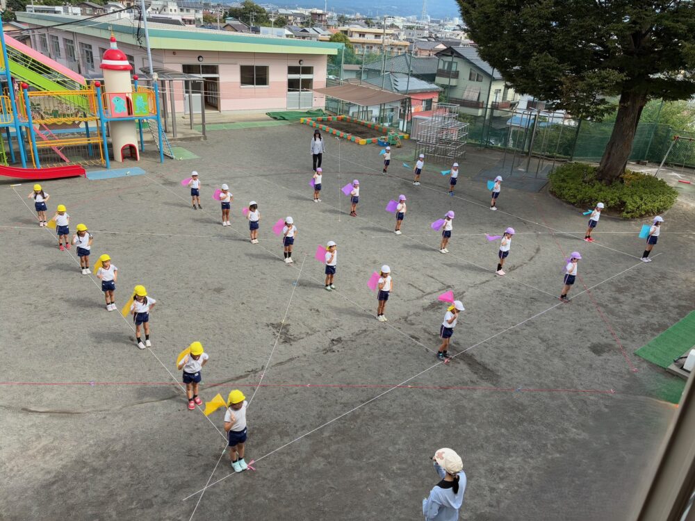 運動会の練習風景です。一人ひとりが一生懸命取り組んでいます。また、同時進行でこうよう祭りに向けた準備も進めています。忙しい毎日ですが、子どもたちは元気いっぱいに頑張っています。
