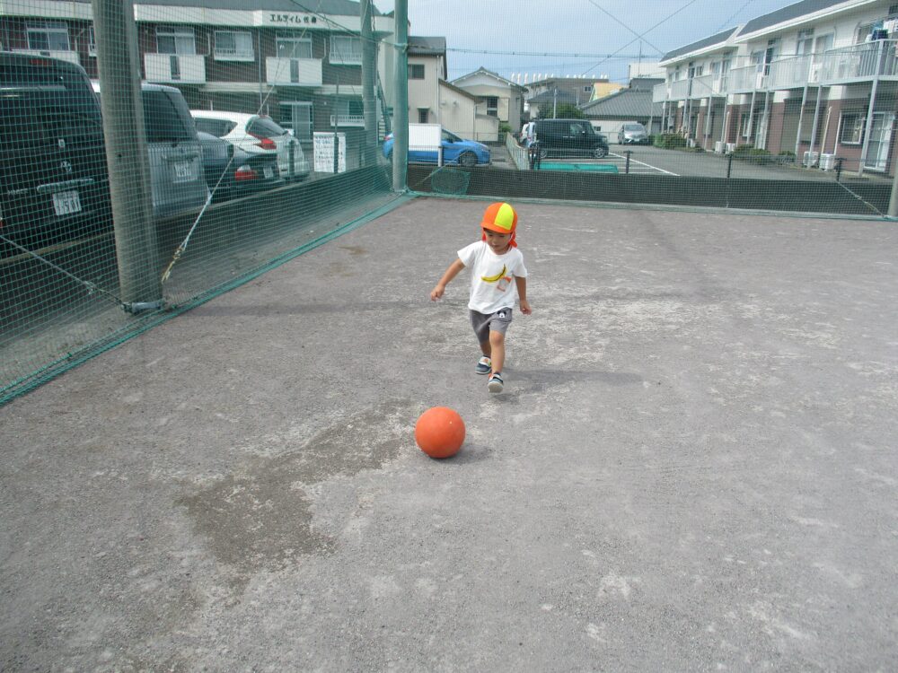 広いグラウンドで自由に遊ぶ満3歳児さん。※こちらのクラスだけは先日の様子となります。