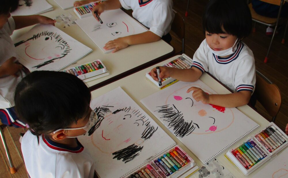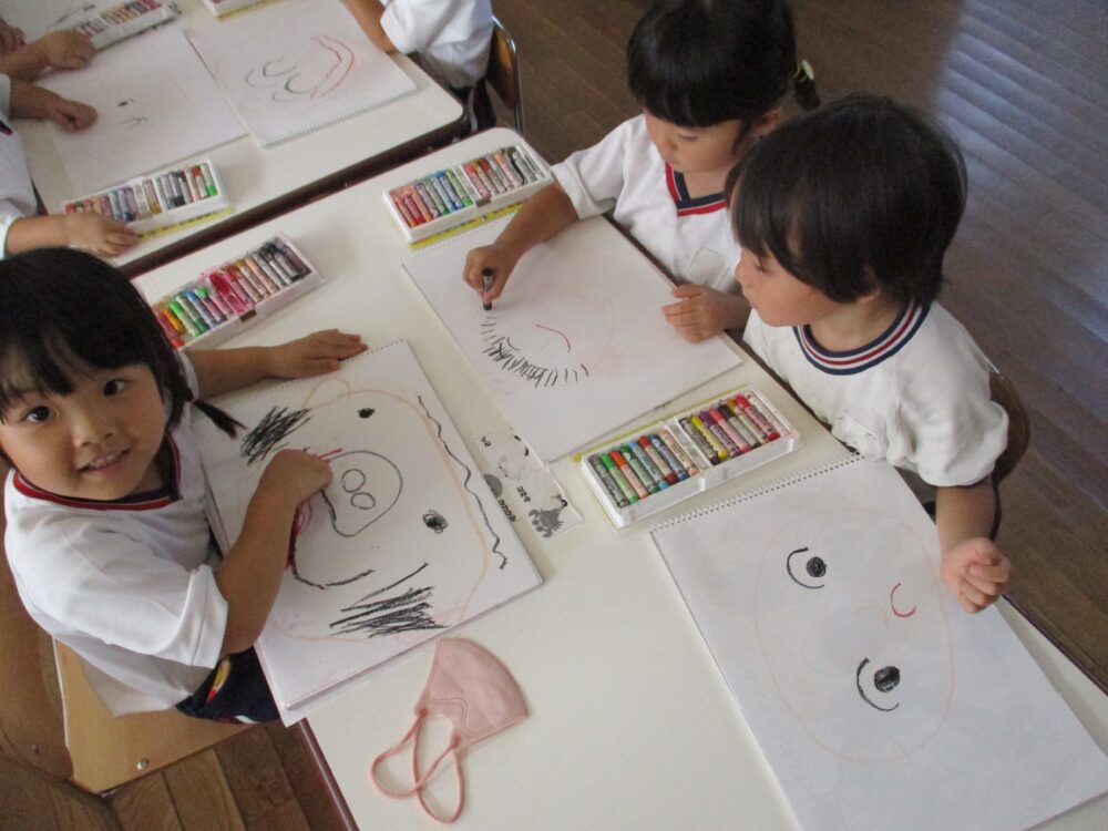 自由画にお顔を描いている年少組さん。