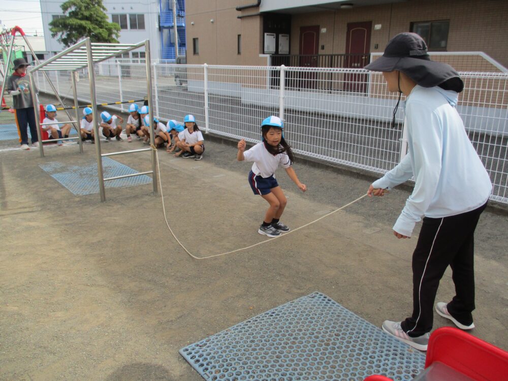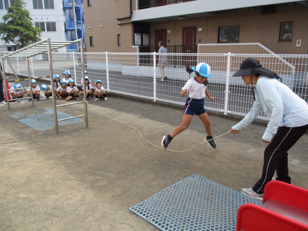 縄跳びに励む年長組さん。