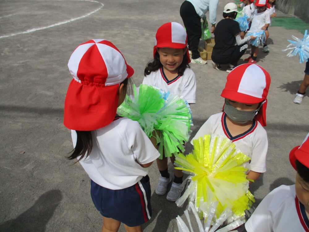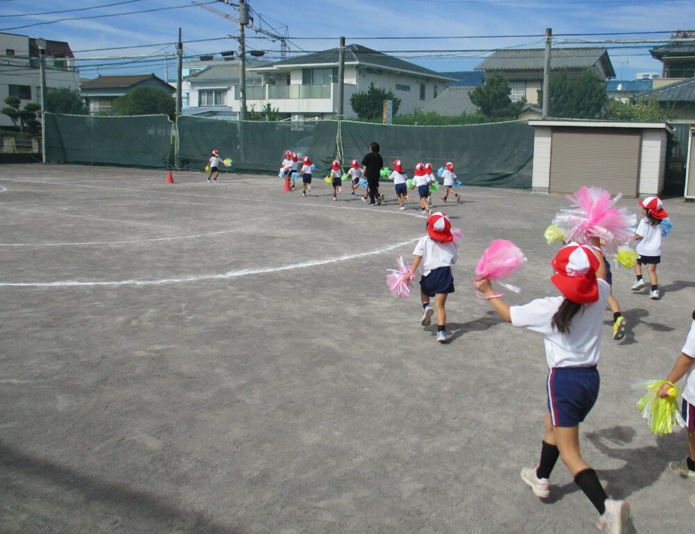 運動会の練習前のウォーミングアップ?の年中組さん。