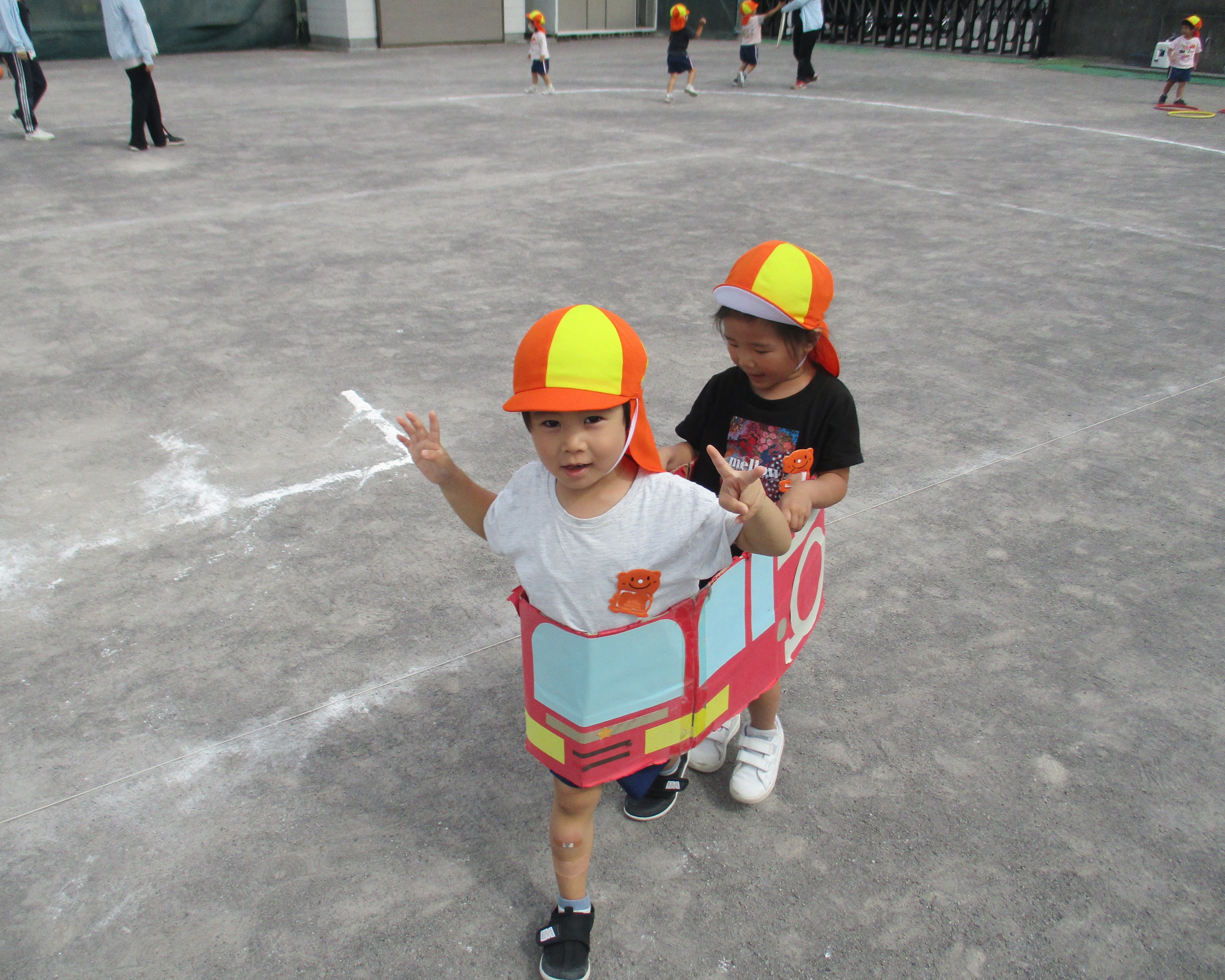 運動会の練習前のウォーミングアップ?の年中組さん。