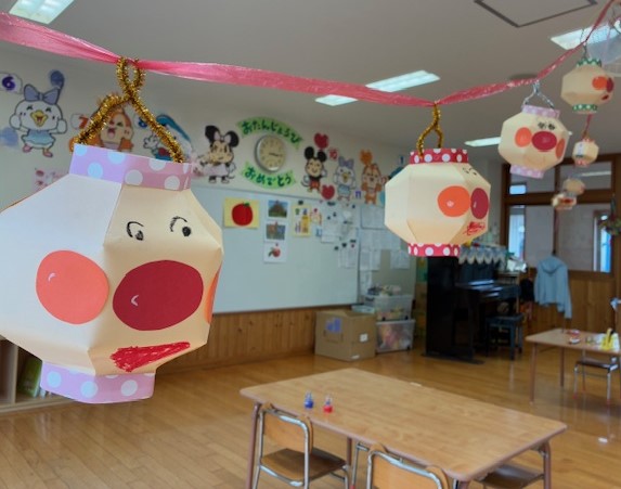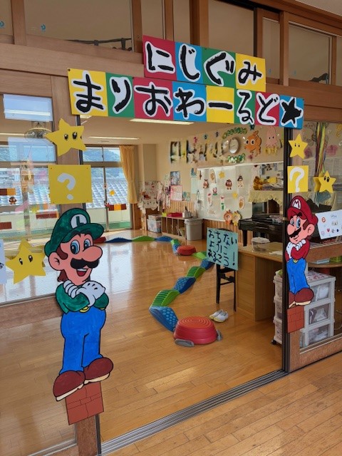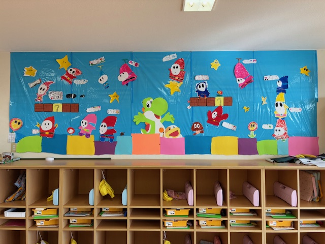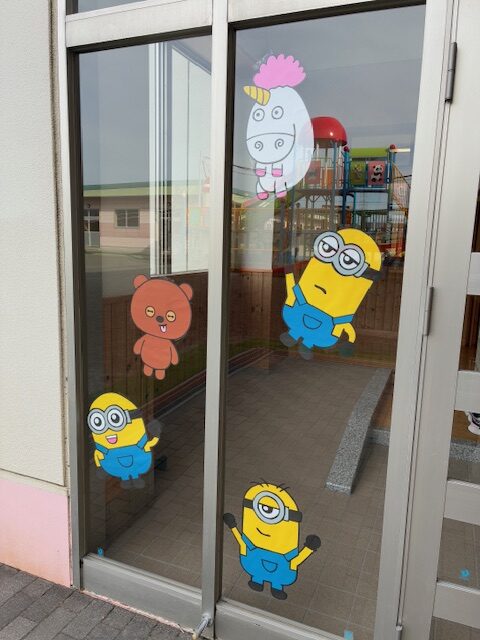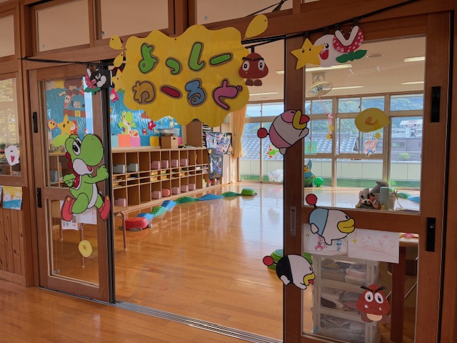 お部屋だけでなく、廊下や玄関、階段まで可愛い装飾でいっぱいです。子どもたちの大好きなキャラクターたちがあちこちに登場していて、園内全体がわくわくする雰囲気に包まれています。