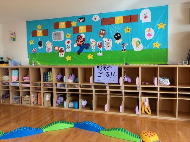 お部屋だけでなく、廊下や玄関、階段まで可愛い装飾でいっぱいです。子どもたちの大好きなキャラクターたちがあちこちに登場していて、園内全体がわくわくする雰囲気に包まれています。