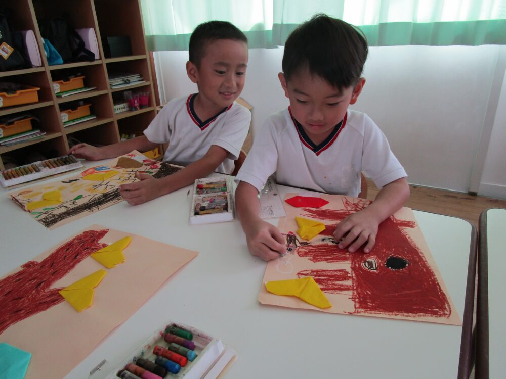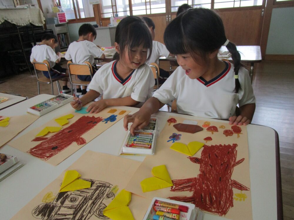秋を探しに・・・ 2025年10月9日 第二耕雲寺幼稚園 各学年の遠足はこれからですので、年長組さんでは絵本の中で秋を探しました。イチョウの葉っぱときのこを作り、皆で探した秋を絵で表現してみました。皆の頭の中で描いた秋を遠足で感じることができるといいですね。