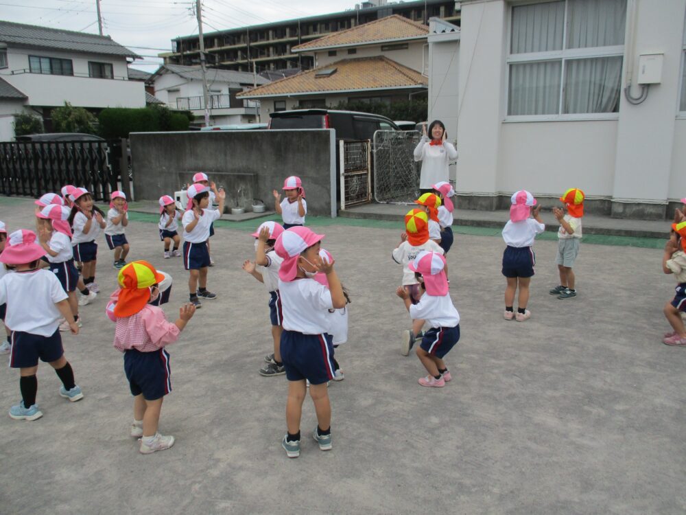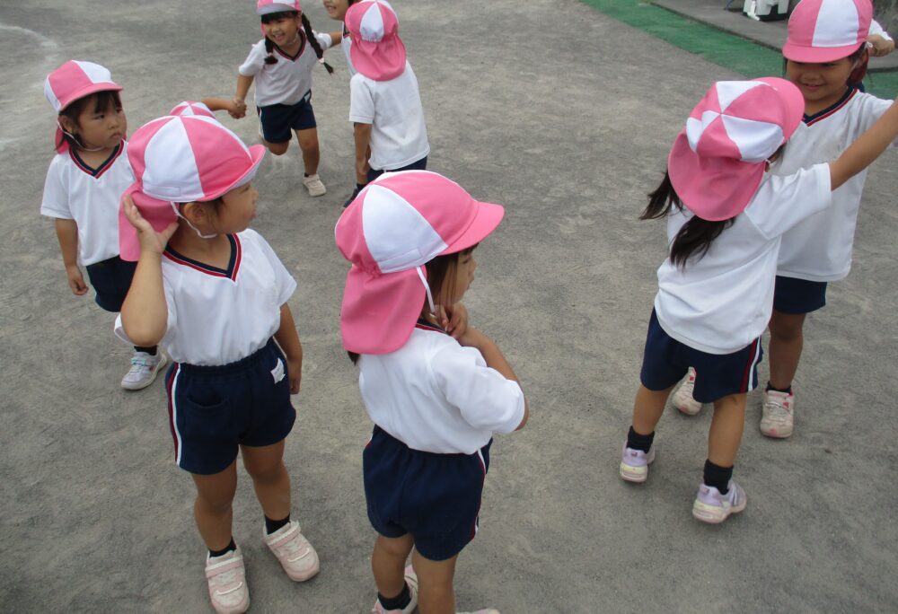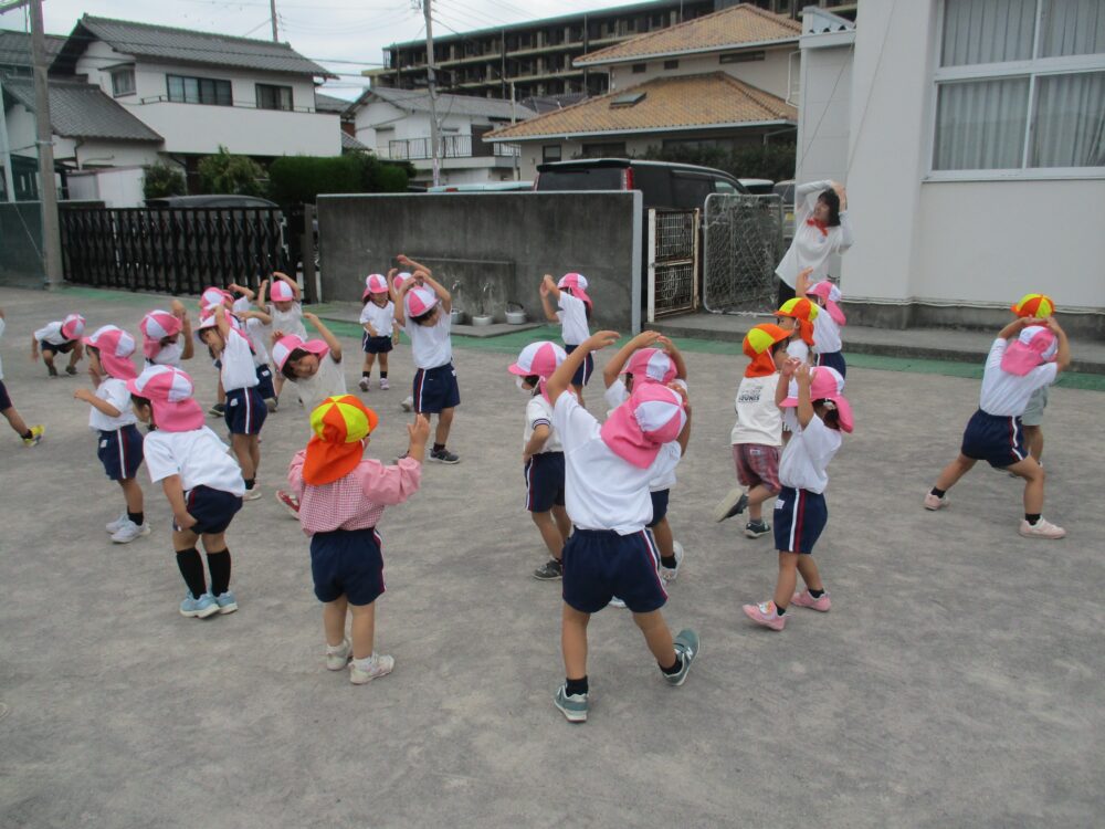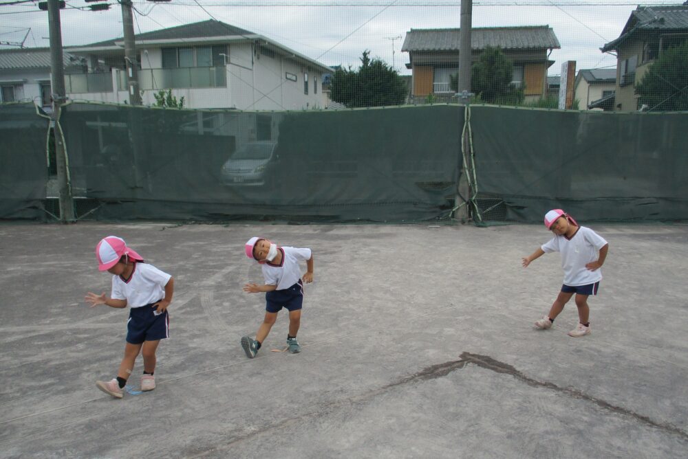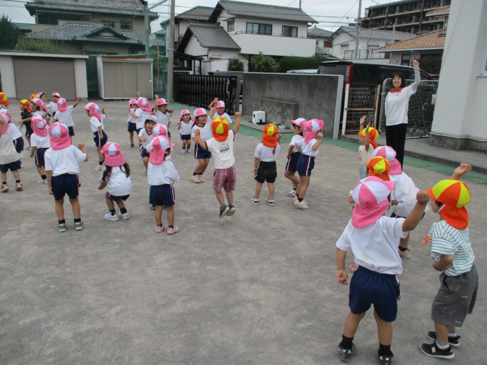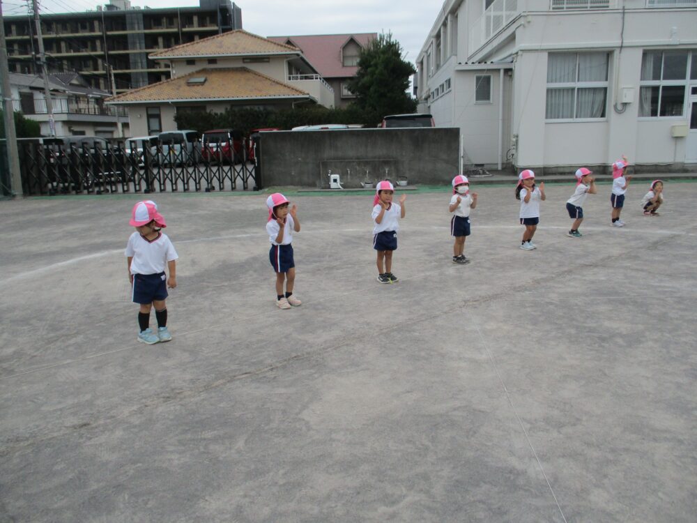 お天気が心配ですが、明日はいよいよ運動会。年少組さんが最後の練習に励んでいました。