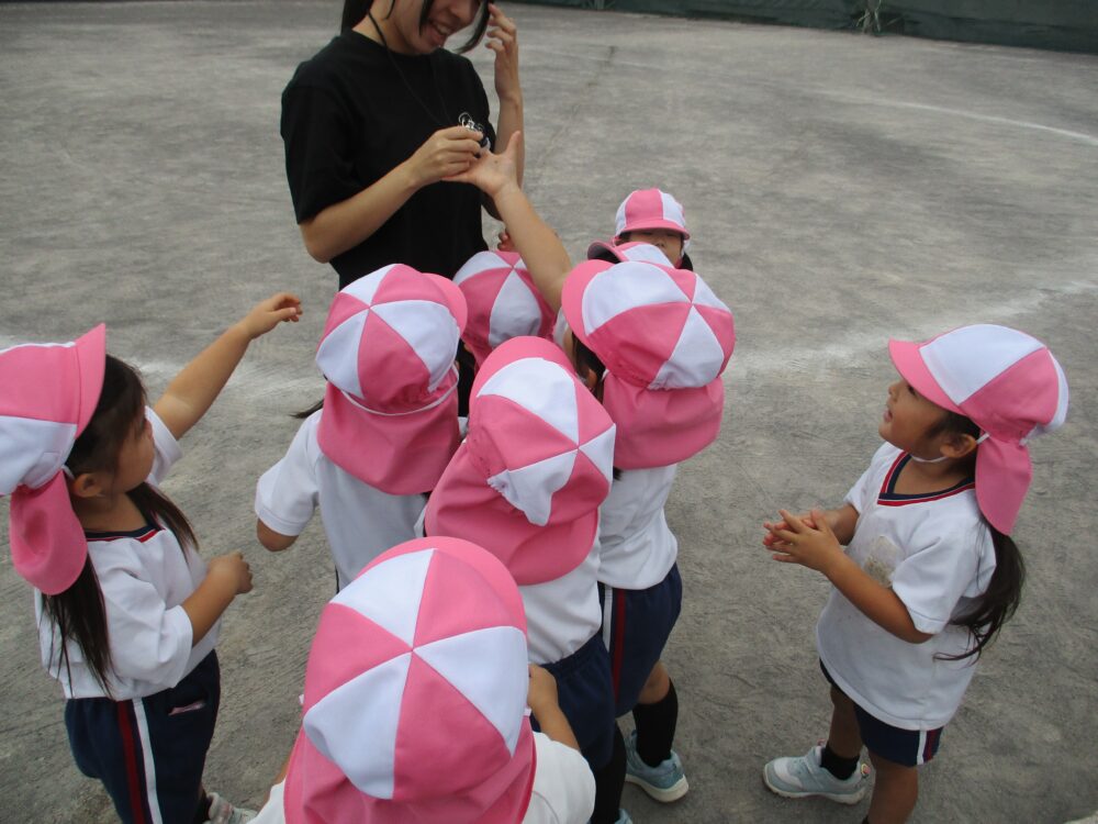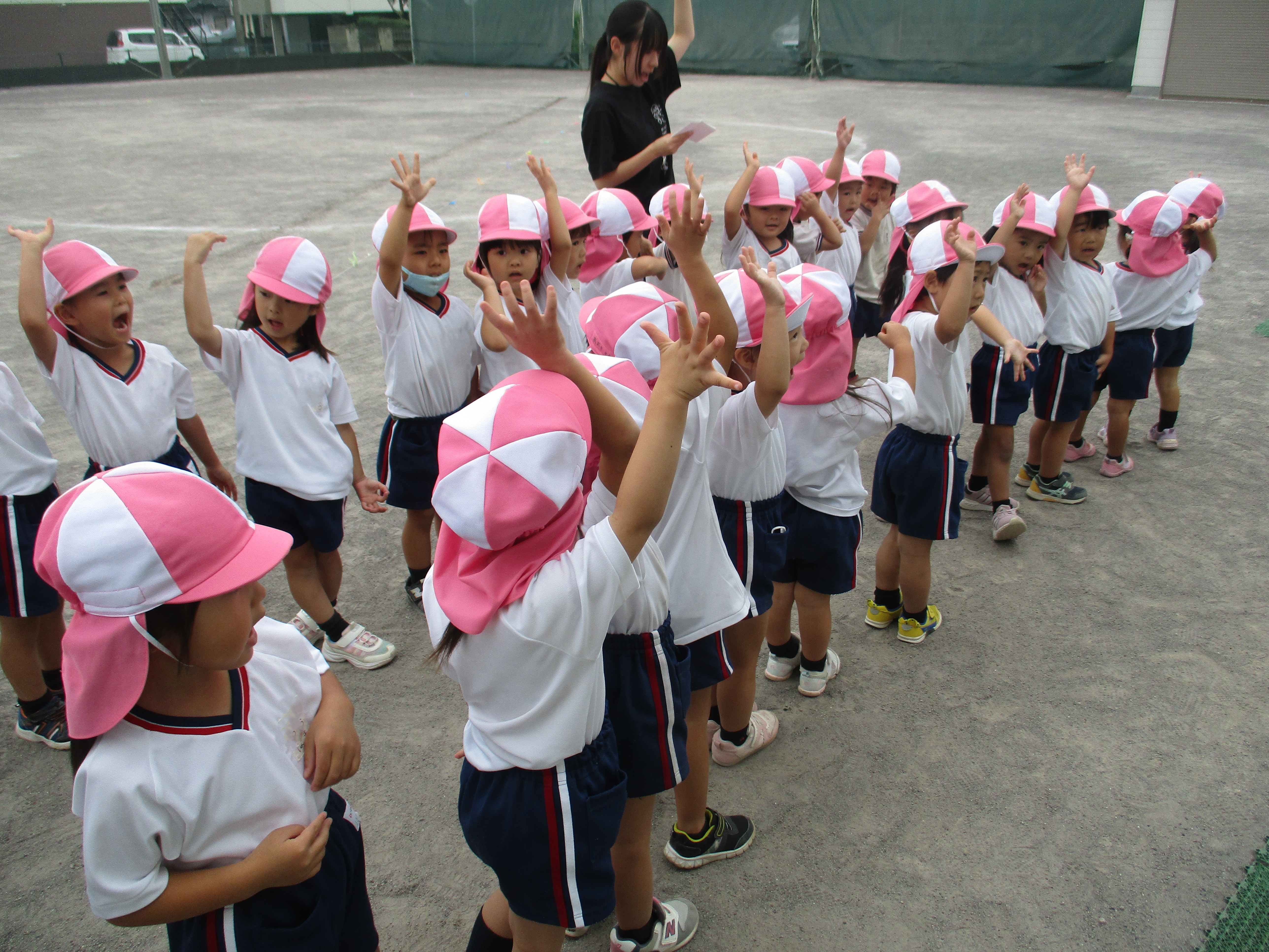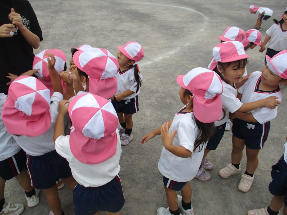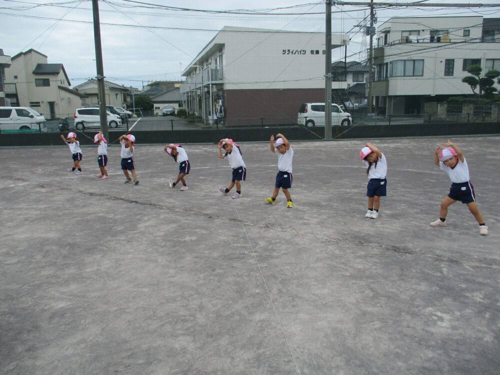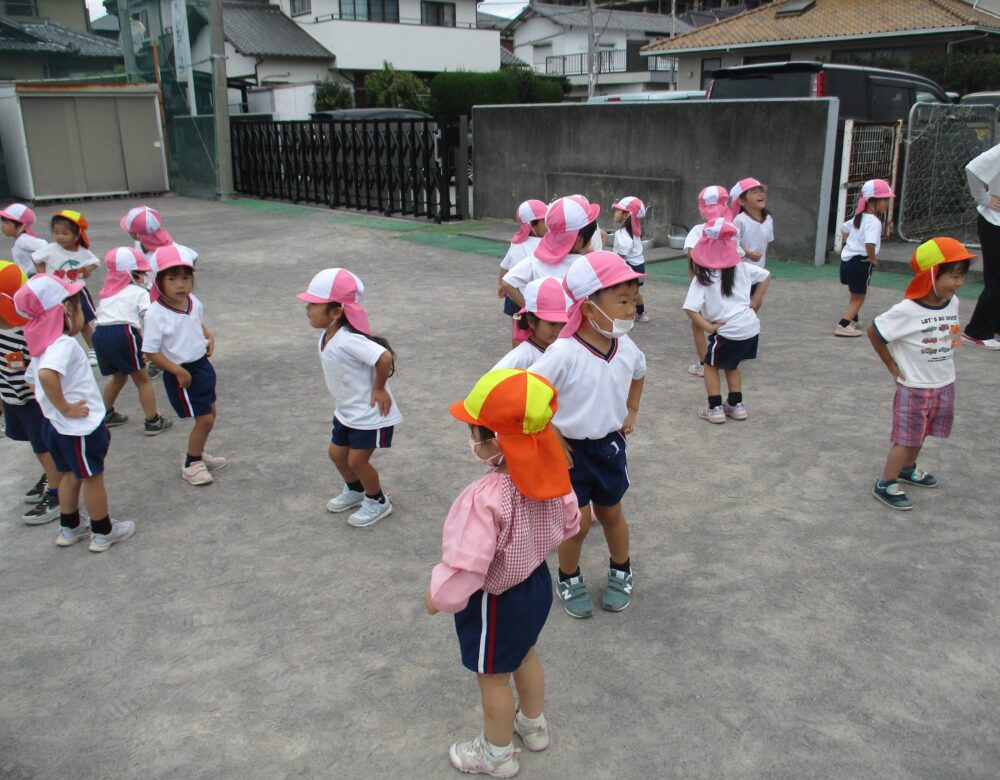 お天気が心配ですが、明日はいよいよ運動会。年少組さんが最後の練習に励んでいました。