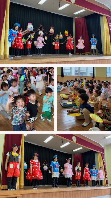 先生たちも楽しく仮装して、子どもたちに負けないくらい大盛り上がり!笑顔いっぱいのにぎやかな時間となりました。因みに先生たちのコスチュームは全てカラービニールで作られています。職人技です。