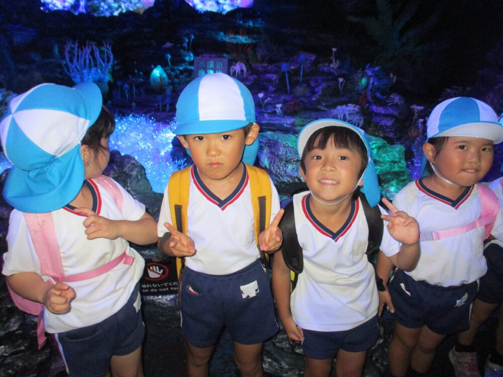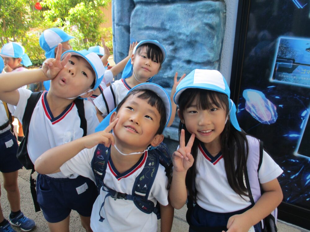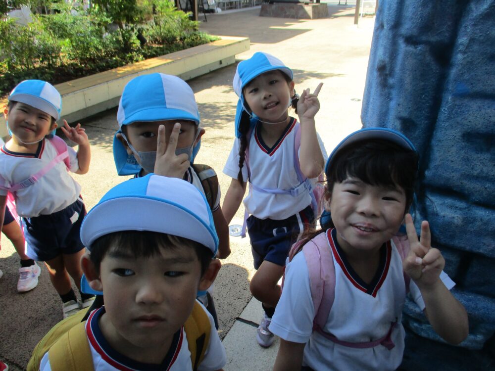 年長組さんが遠足に行きました 2025年10月17日 第二耕雲寺幼稚園 雨や曇りの天気が続いている中、年長組さんの遠足の日は気持ちの良い快晴で絶好の遠足日和。深海水族館や沼津港大型展望水門びゅうお、港口公園に行きました。思い出に残る遠足だったね。 出発~