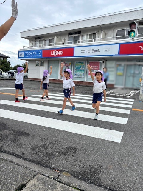 信号の見方や横断歩道の渡り方、車や自転車に注意するポイントなど、交通ルールを具体的に教えていただき、子どもたちも真剣な表情で話を聞いていました。その後、実際に道路を歩いてみる体験もあり、楽しみながら安全についての理解を深めることができました。