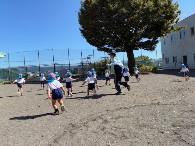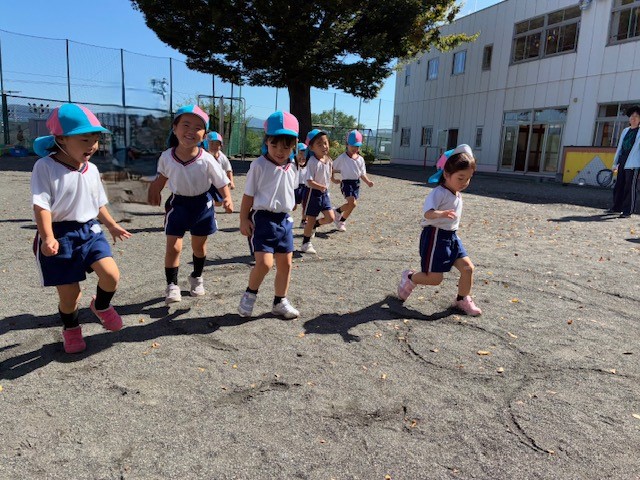 鬼ごっこ遊びの要素も取り入れ、先生につかまらないように!と夢中で走る姿が見られました。笑い声があふれ、体を動かしながら形の認識も深まる、楽しい時間となりました。