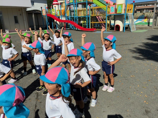運動会の入場行進の練習を行った年少組さん。大きく手を振って、元気に歩く姿が見られました。行進の後は「うんとこどっこいうんどうかい」を歌います。楽しそうに歌う様子からも、運動会への期待が高まっているのが伝わってきました。