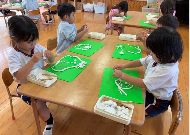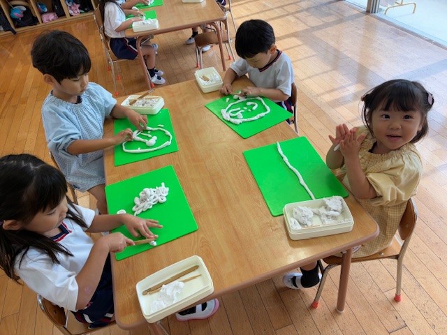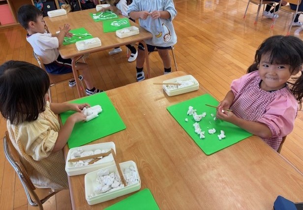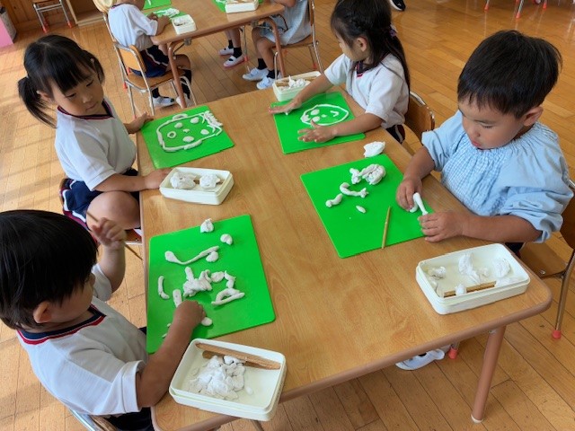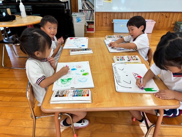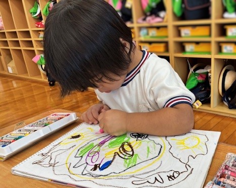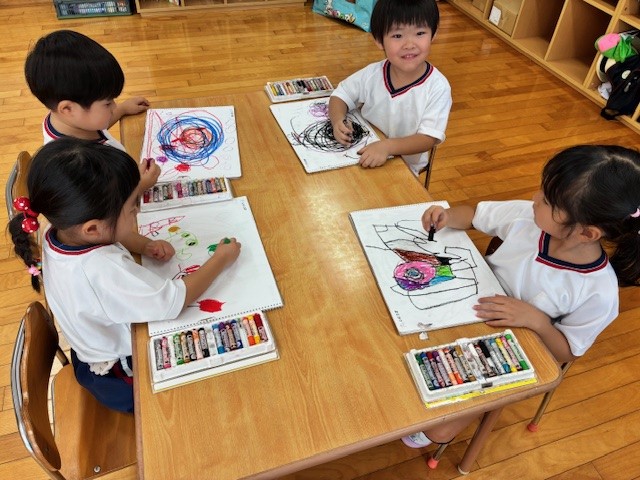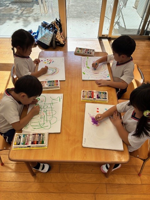年少組さん粘土遊び/自由画 2025年10月27日 耕雲寺幼稚園 年少組 りす組さんは、粘土を使って「顔」を作りました。目や口の形を考えながら、思い思いに表情をつくる子どもたち。笑っている顔、びっくりしている顔など、それぞれに個性あふれる作品ができあがりました。 ことり組さん、今日はクレヨンで自由にお絵描き!のびのびと描く姿がとっても楽しそうでした。耕雲寺幼稚園の子どもたちは絵がとても上手で、昨年リニューアルした園パンフレットの表紙にも子どもたちの絵を採用しています。