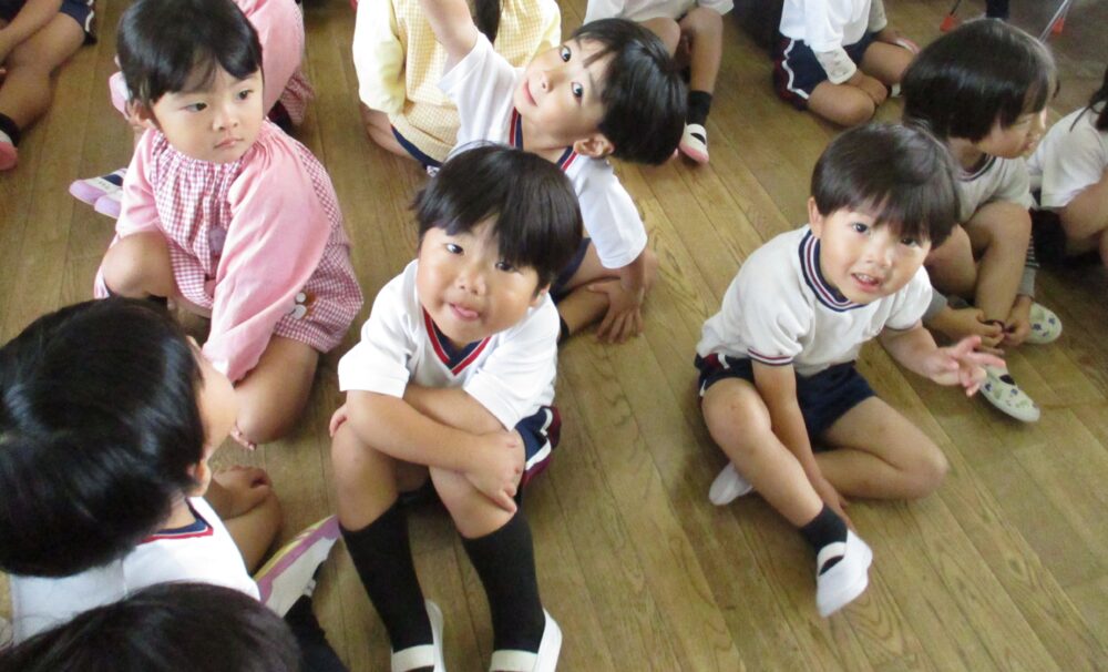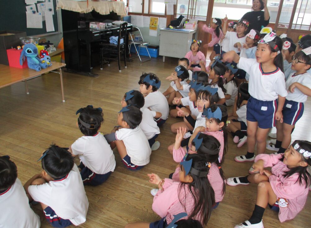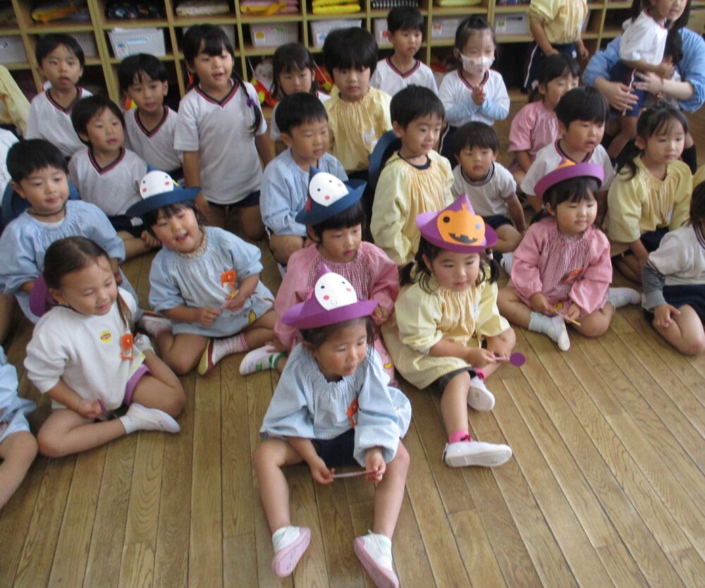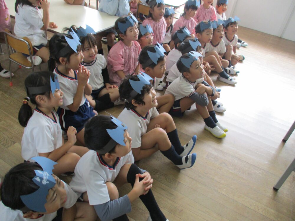 年長さん、年中さん、年少さんがさくら組さんに集まりこのステージを楽しみました。