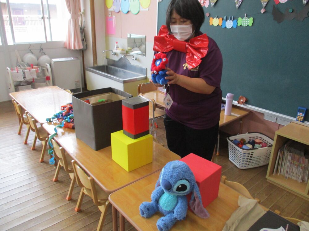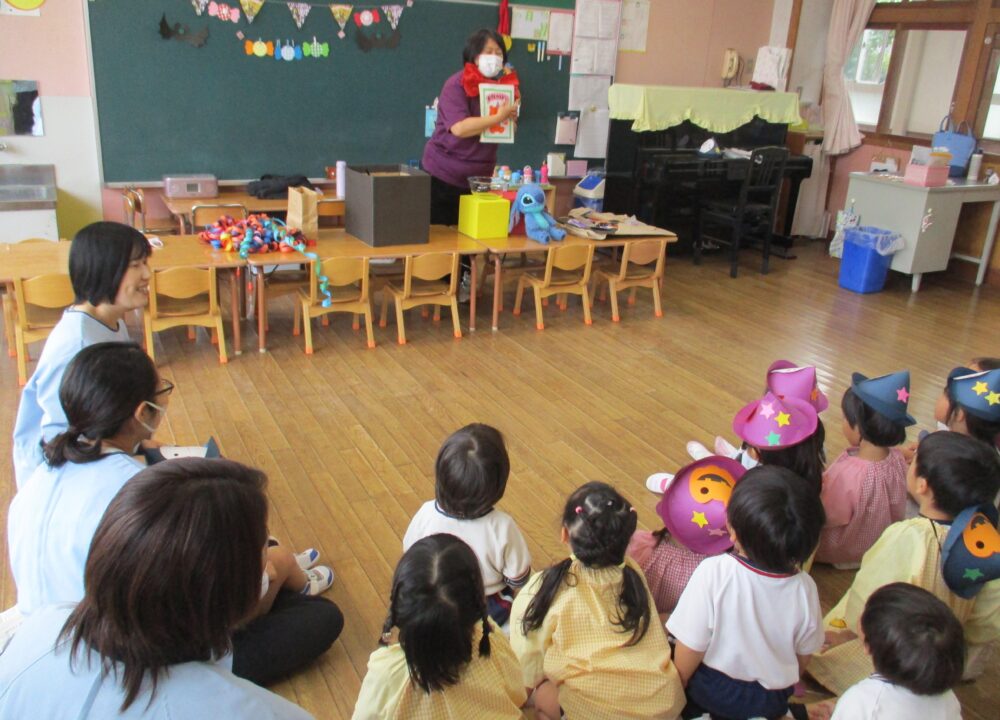 次のステージはすみえ先生によるマジック!年長さんと年中さん、年少さんと満3歳児さんに分かれて披露されました。