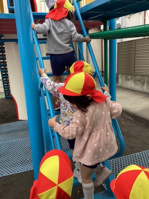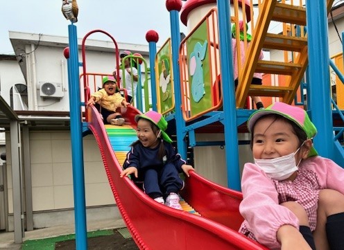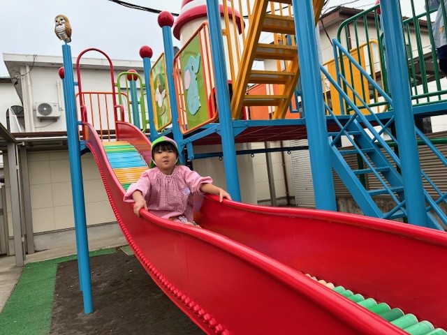 ちゅうりっぷ組さんは、みんなで仲良くすべり台。