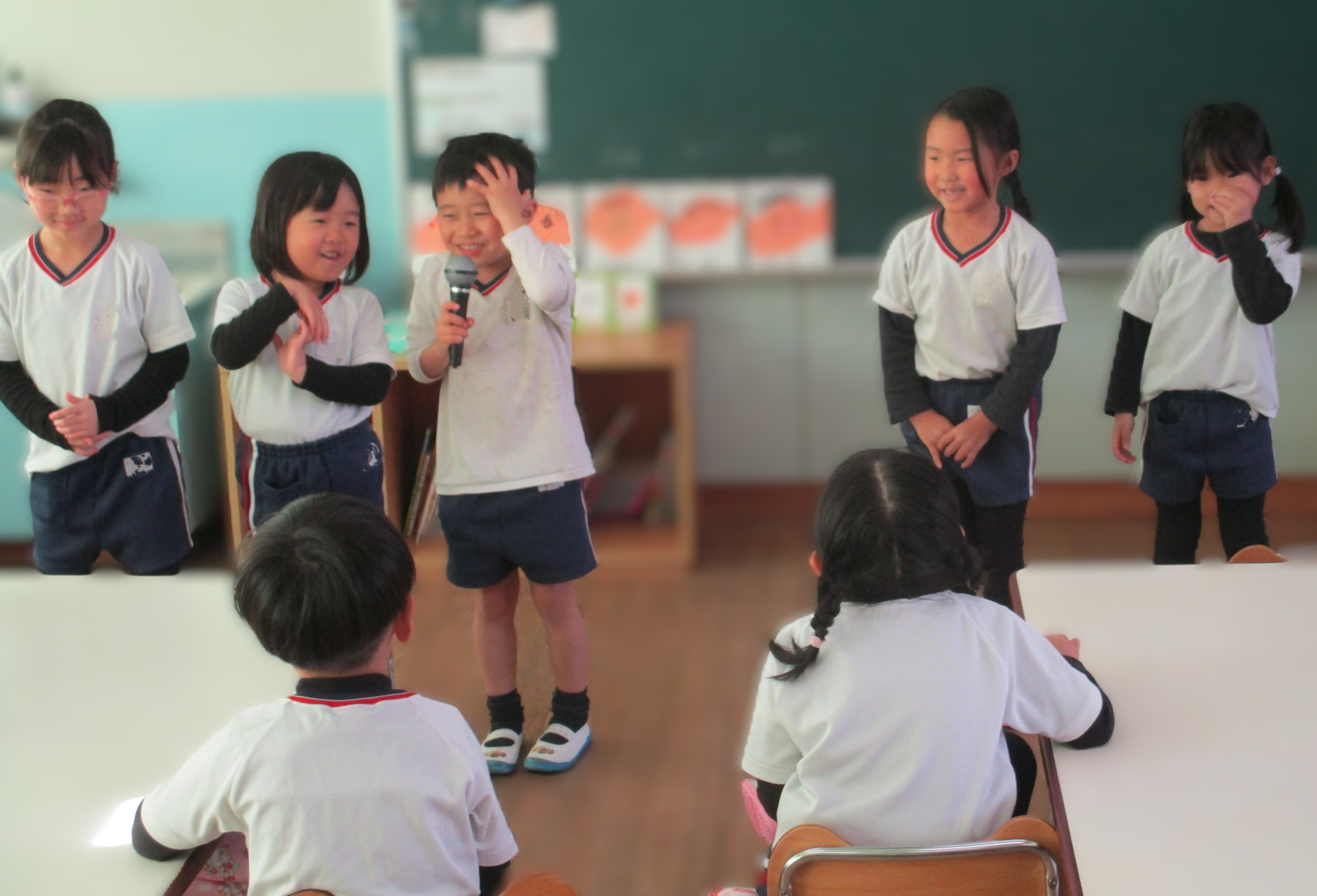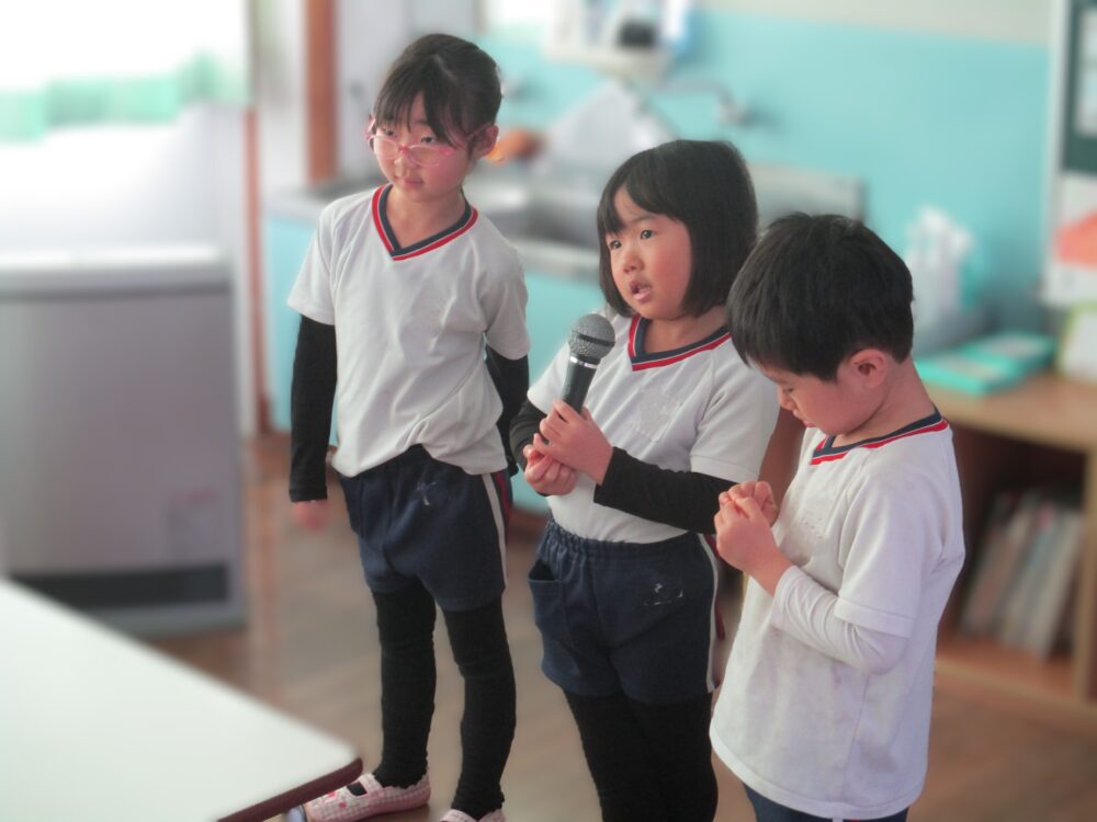 大きいクラスはお当番さんがいます。年中さんではちょうどお当番さんが前に立って挨拶をしていました。