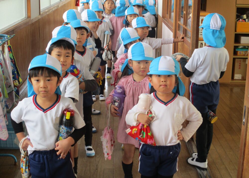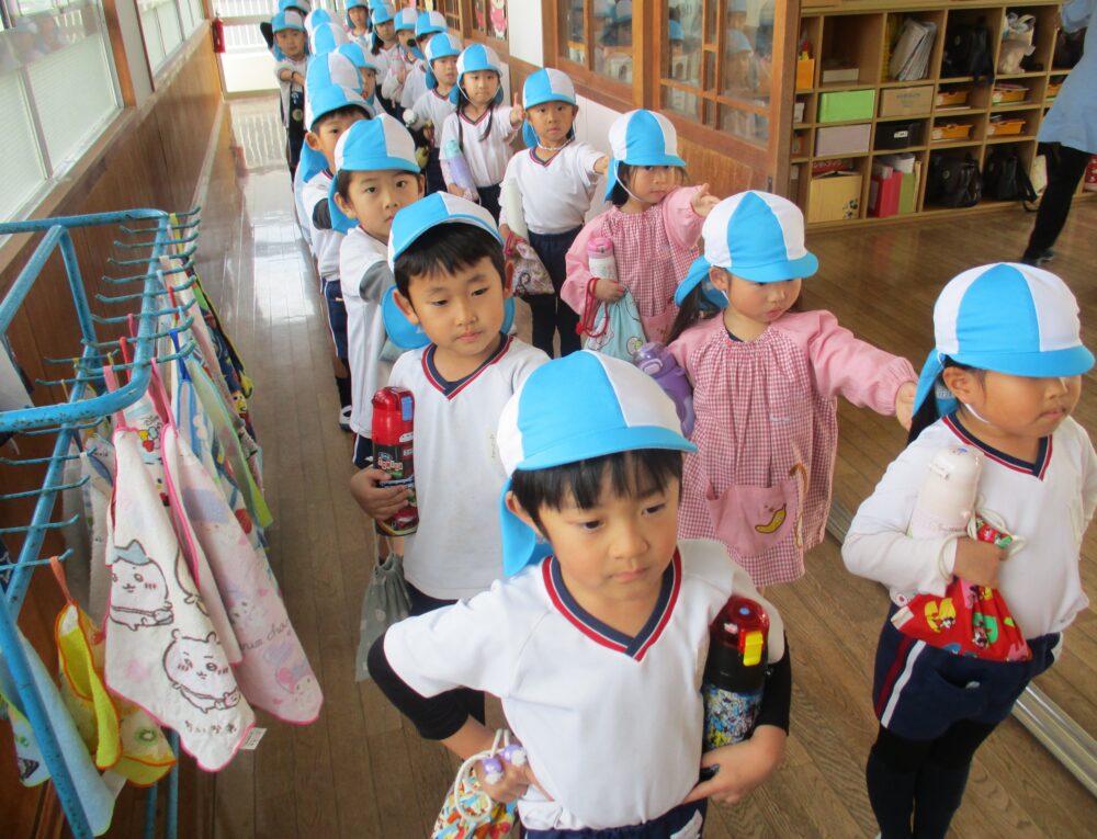 みんな、成長しているなあと思いながら教室を後にすると・・・年長組さんが外に行く前に廊下で背の順に並んでいました。みんながとてもかっこよかったので思わずシャッターを押しました。もうすぐ小学校に行くんだなあとしみじみ感じます。