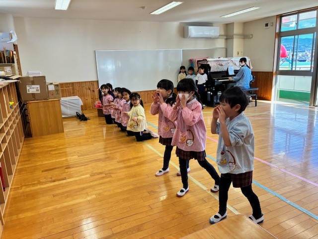 生活発表会に向けて練習中のほし組さん。先日、一足先に年長組さんは衣装を着ての写真撮影があり、いきいきとした表情がとても印象的でした。