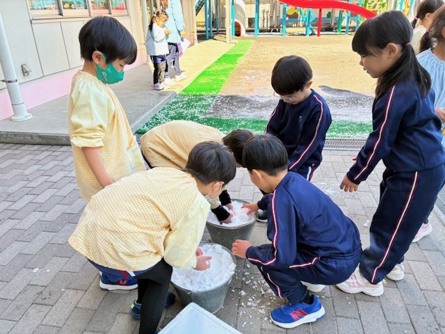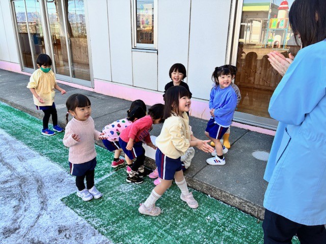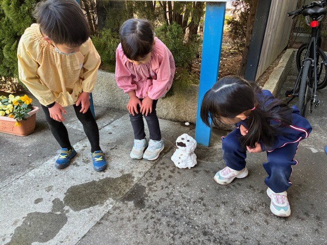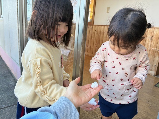 ちゅうりっぷ組さん・ほし組さん雪に触れた特別な一日 2026年2月12日 耕雲寺幼稚園 満三歳 沼津に雪が降りました。遊具に残った雪を先生たちが集め、さらに遠方に住む先生が自宅前の雪を持ってきてくれました。集まった雪はわずかでしたが、子どもたちは「つめたい!」「ふわふわ!」と目を輝かせながら大喜び。 本物の雪に触れた、心あたたまるひとときとなりました。