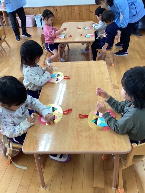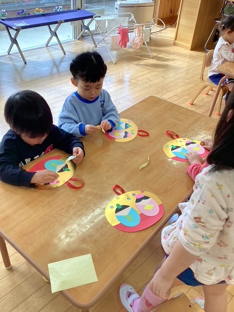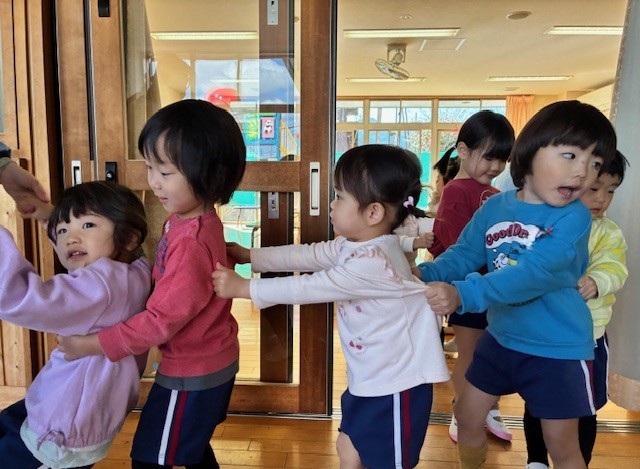 ちゅうりっぷ組さんひな祭りの製作 2026年2月18日 耕雲寺幼稚園 満三歳 3月3日のひな祭りに向けて、ひな祭り製作を楽しみました。 作品を前に記念写真を撮りました。みんなのかわいい笑顔をそろえるのは少し難しく、にぎやかで楽しい撮影タイムになっていました。そんな様子もこの時期ならではの微笑ましい姿です。 今月は2人の新しいお友だちが仲間入りしました。ちゅうりっぷ組の電車もどんどん長くなり、先生を先頭に歩く姿がとても可愛らしいです。新しいお友だちを迎えて、ますますにぎやかで楽しい毎日になっています。
