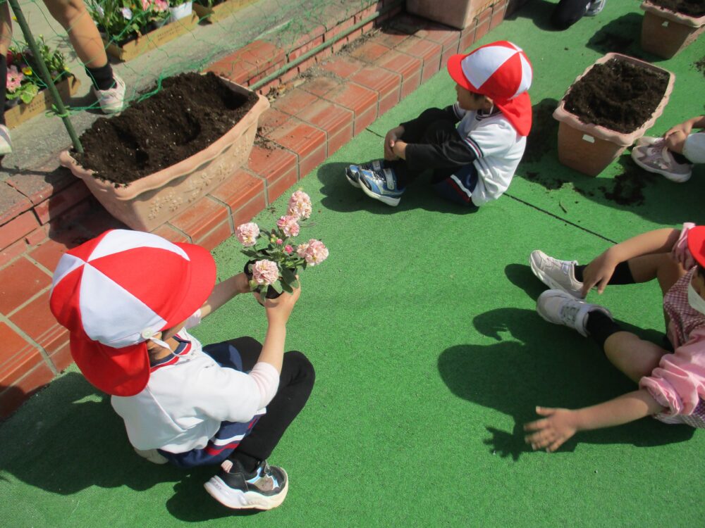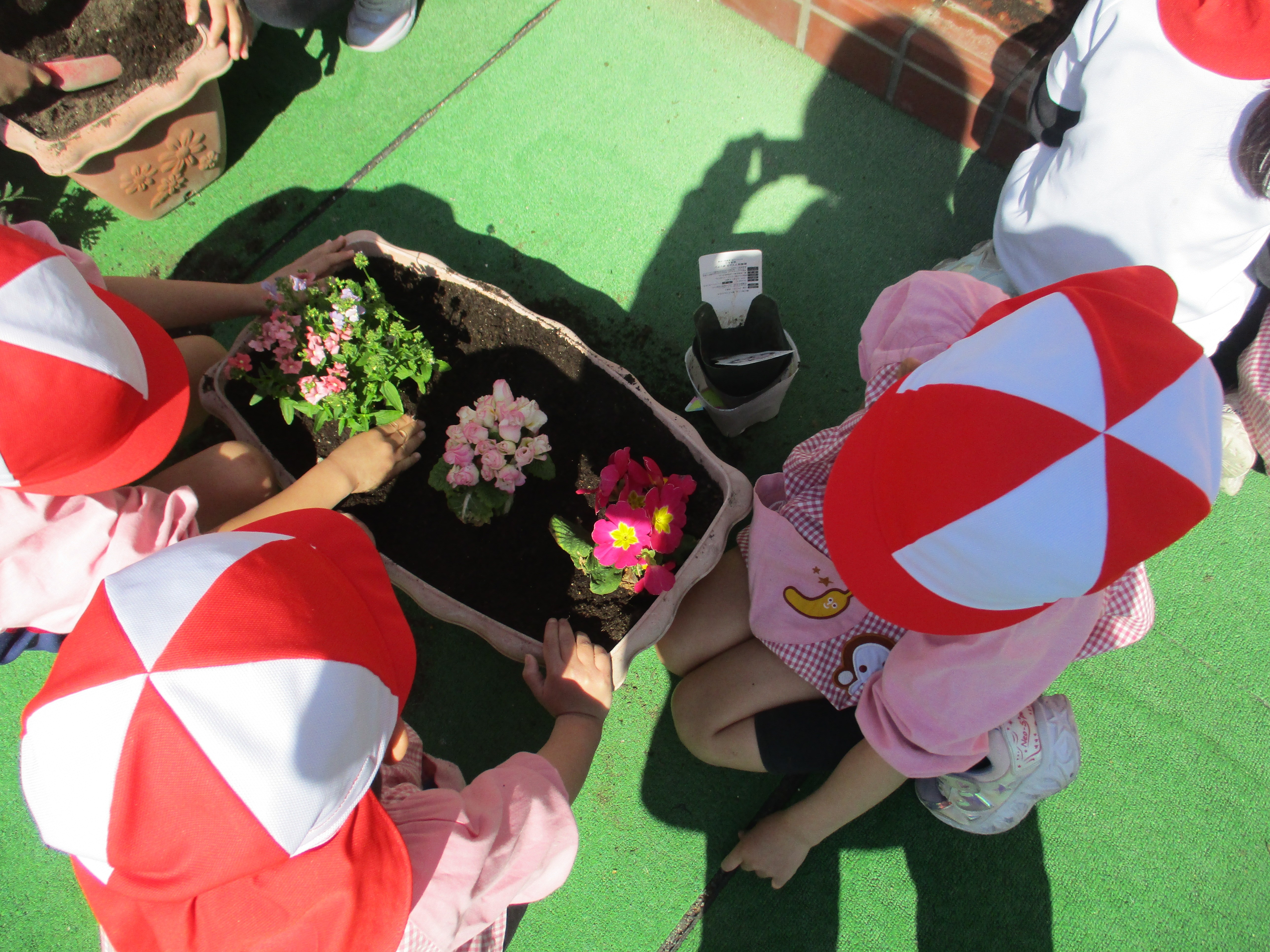 お花を植えました 2026年3月11日 第二耕雲寺幼稚園 卒園式や入園式がもうすぐです。園庭のプランターに年中組さんがお花を植えてくれました。自分達で花を選び、プランターの土を掘り、花の根に土をかけます。「かわいいね」「お花きれいね」とお話ししながらきれいな花壇を作ってくれました。