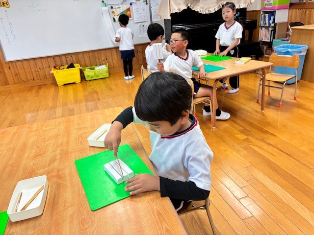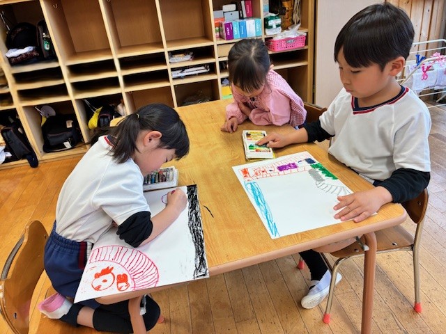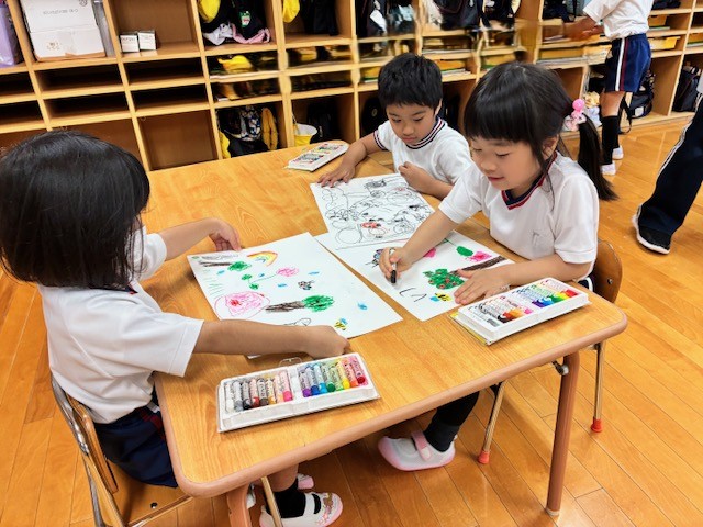 ほし組さん自由画・粘土遊び 2026年4月10日 耕雲寺幼稚園 年長組 あいにくの雨ですが、元気な声が教室いっぱいに広がっています。 ほし組さんでは、新しい粘土を使い始めました。さっそく自由にこねたり形を作ったりしながら、制作を楽しんでいました。