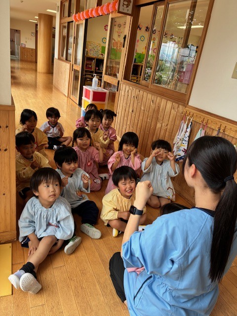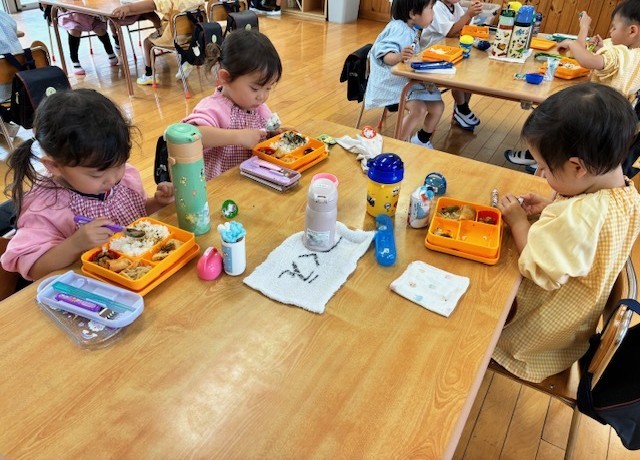 年少組さん 給食が始まりました 2026年4月23日 耕雲寺幼稚園 年少組 年少組さんの給食が始まりました。お友だちや先生と一緒に楽しい時間を過ごしています♪ 今日はあいにくの雨。ことり組さんはお部屋あそびを楽しみました。 今年度の新任の先生です。子どもたちに負けないくらい元気いっぱいで、明るく素敵な先生です。これからどうぞよろしくおねがいいたします。
